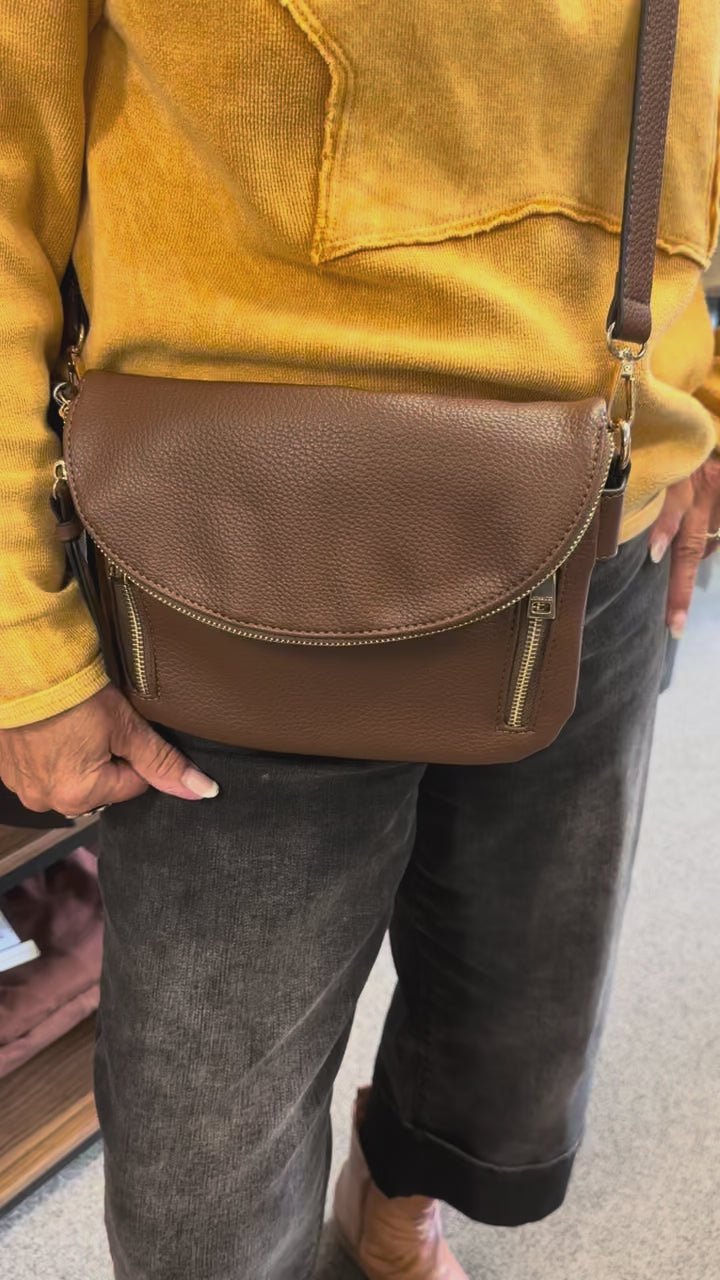 A sleek and functional style, the Aubree crossbody offers everyday convenience with a polished, hands-free silhouette. Three-compartment design with dual front zip pockets and a back zip pocket, snap and zip closures for secure storage, adjustable and removable crossbody strap for versatile styling and made from smooth, cruelty-free vegan leather
