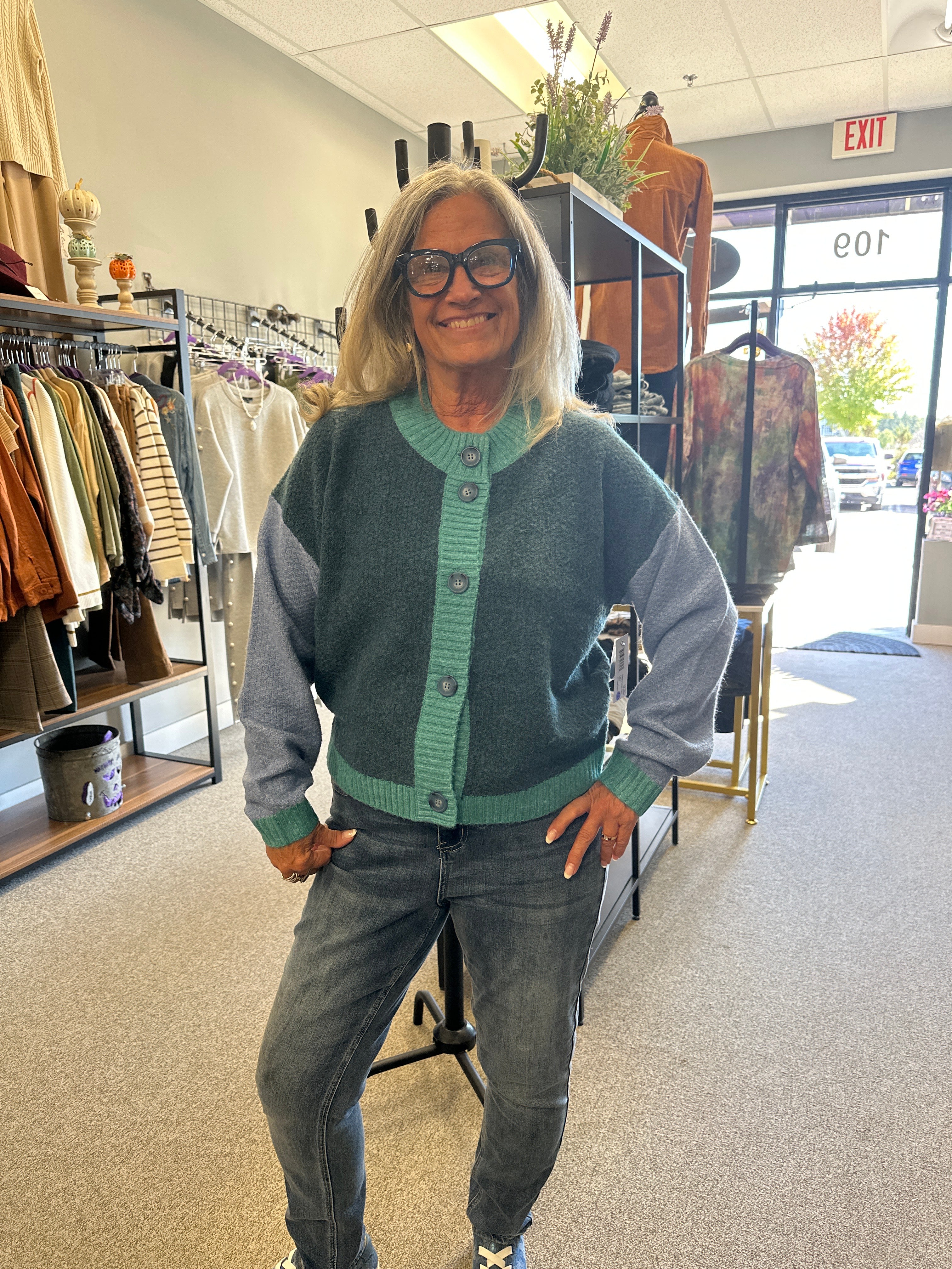 Beautiful button down sweater, with a variety of colors, ribbed hemline, wrist and neckline and big buttons.