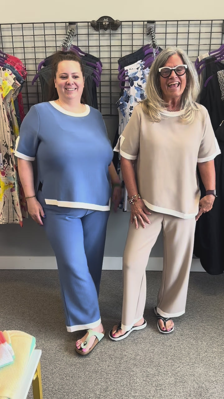 The Kiara Pant is a sophisticated look made with high quality stretch matte crepe knit. Contrast color hem, straight leg with a easy relax fit. Stylish and comfort.