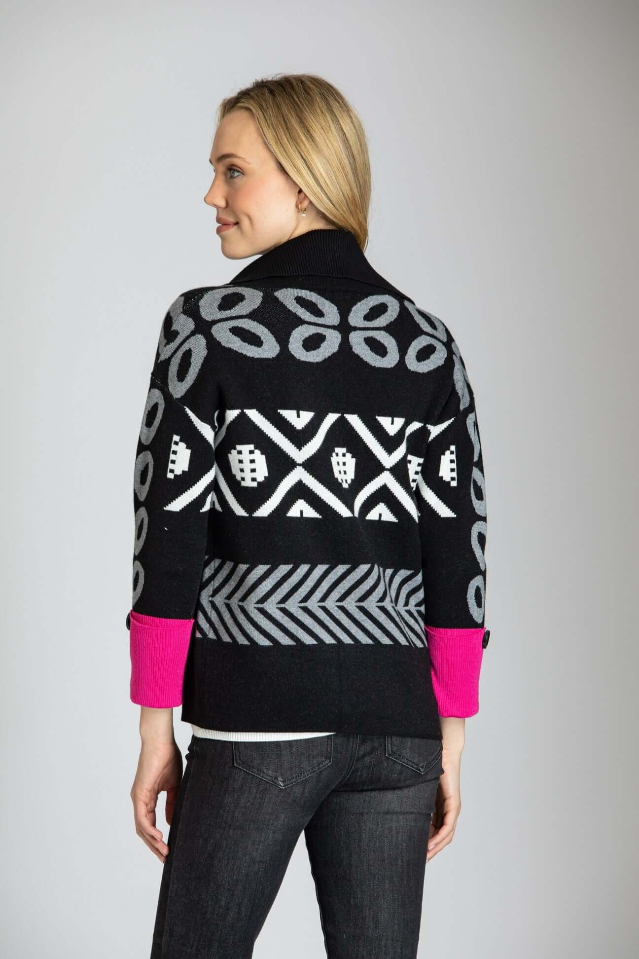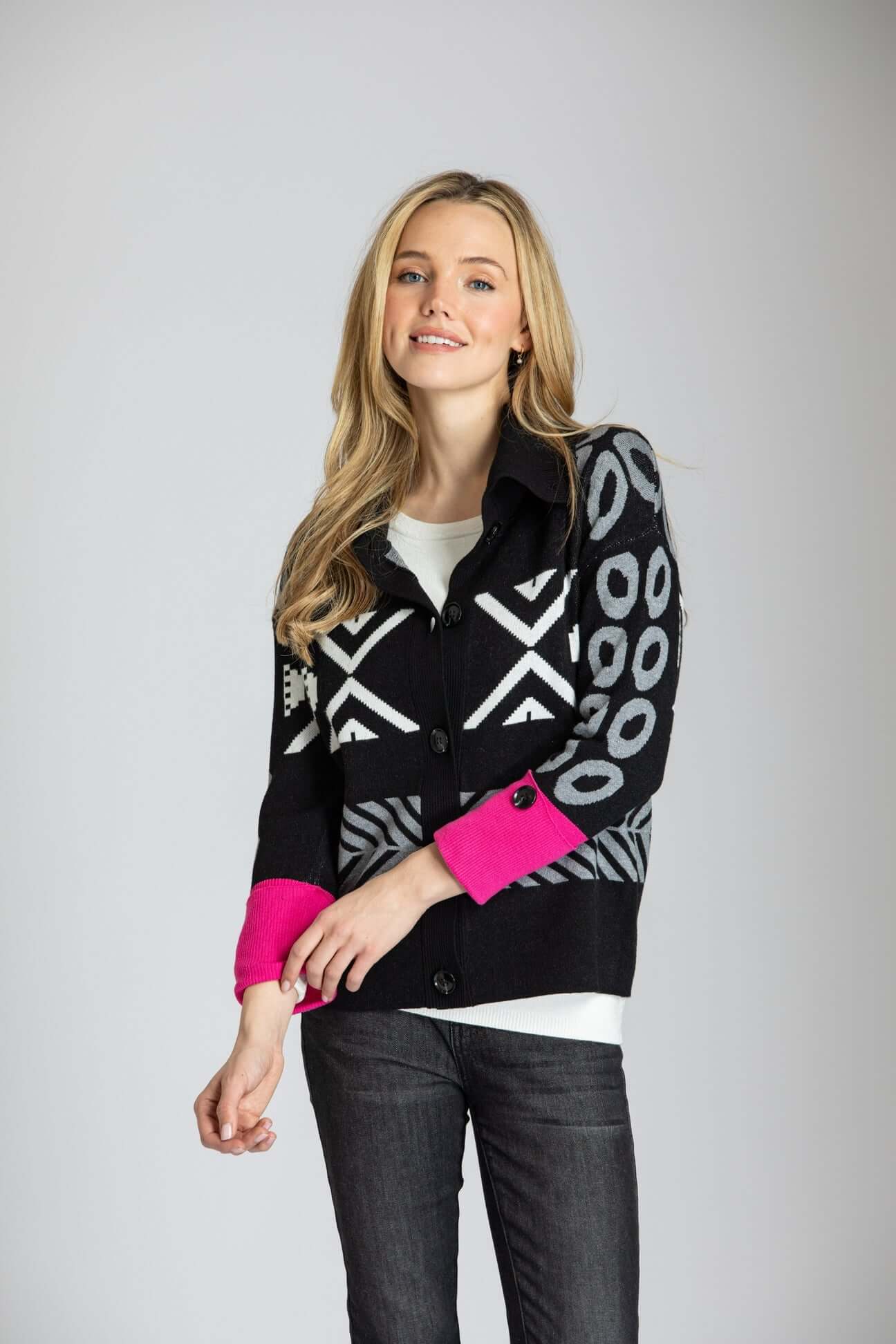 Who doesn't love a versatile cardigan. This colorful button down sweater, which can be worn open or closed, has the right amount of color and adorable button detail sleeves in a fun pink.