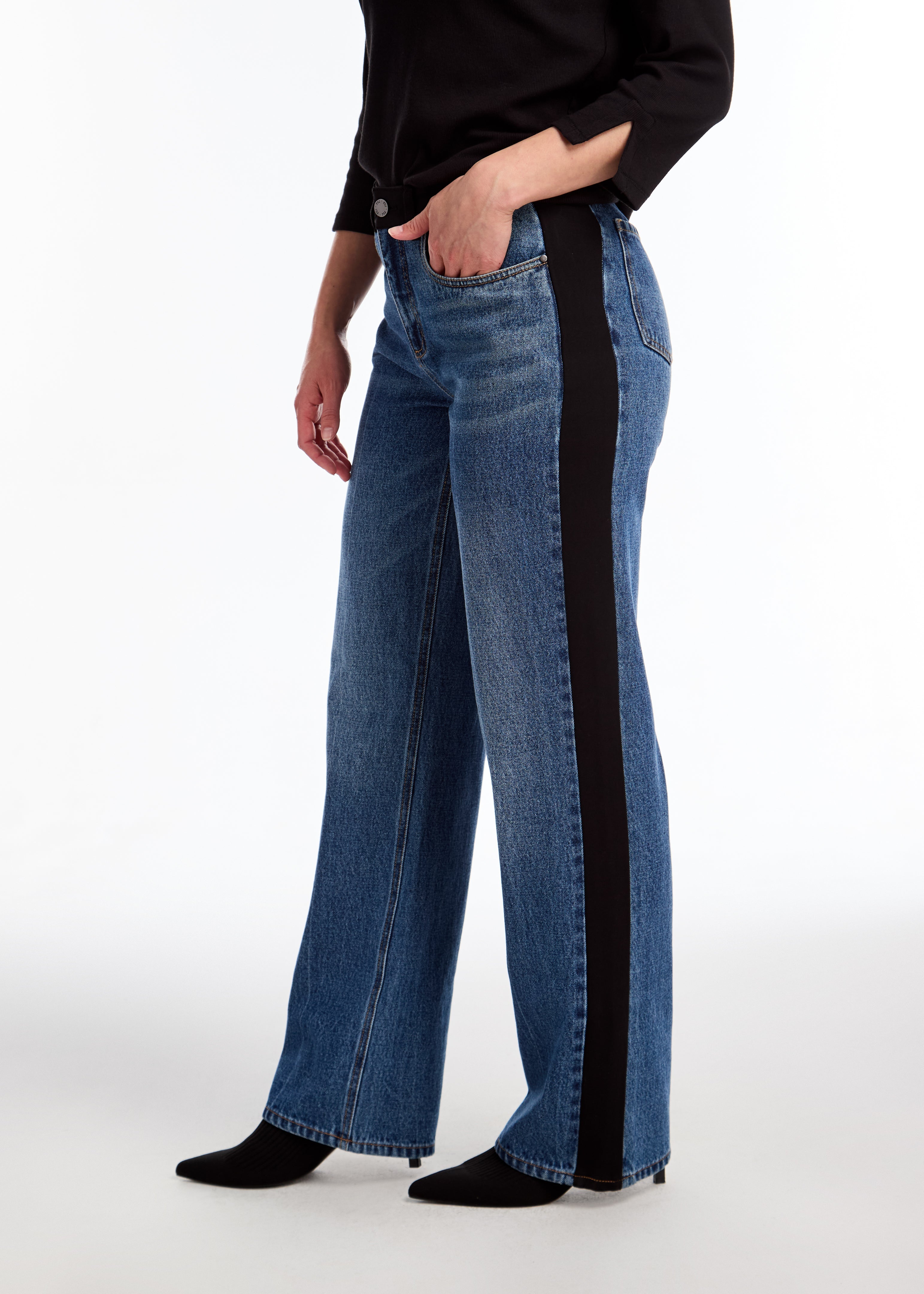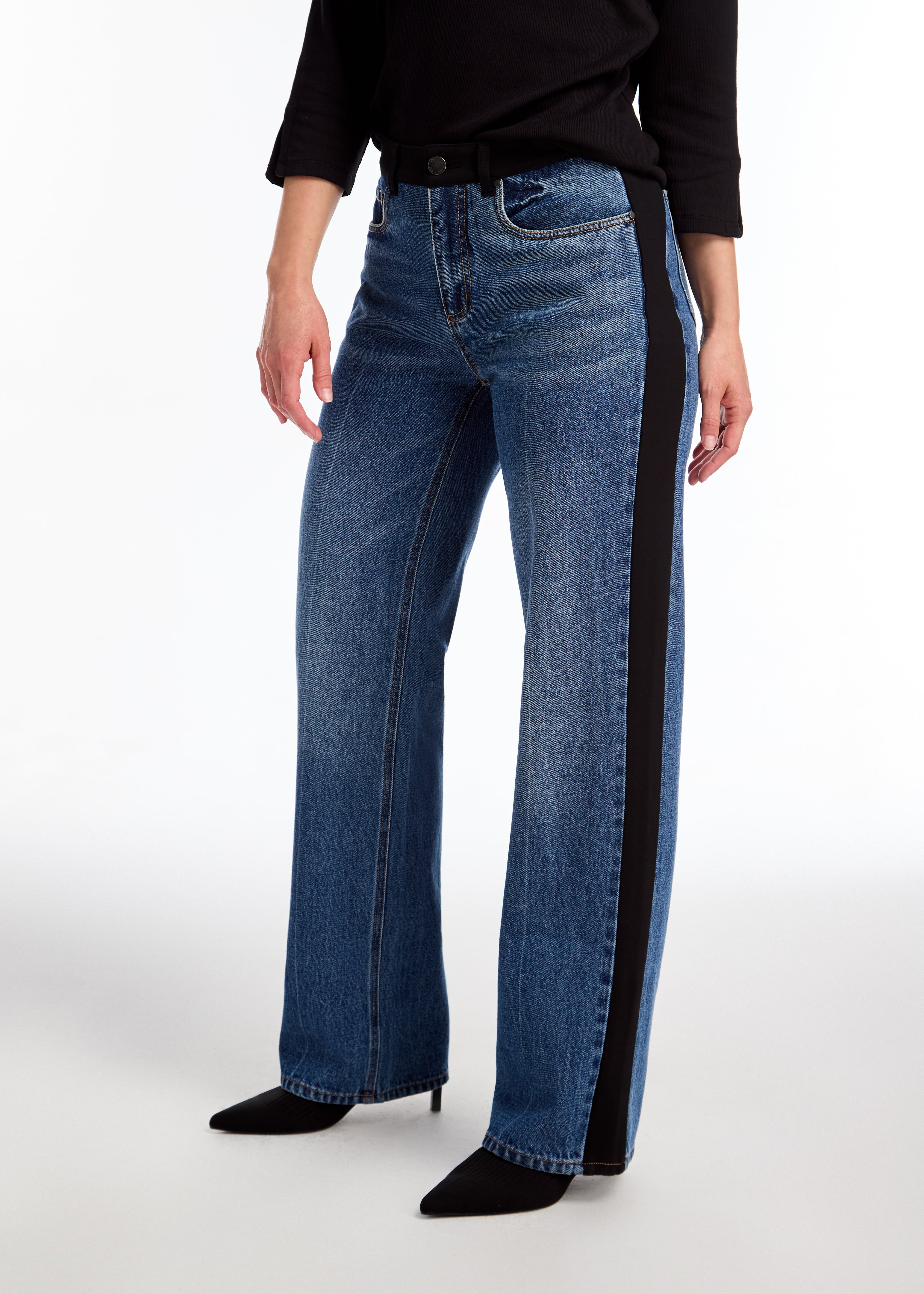 Step into sophistication with our wide leg pants, boasting a mix of fabrics for texture and style, complete with five functional pockets and a secure zipper closure.