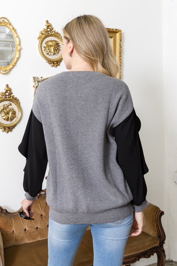 Expertly crafted for comfort and style, the Shane top is a must-have addition to your wardrobe. Featuring a flattering crew neck design, contrast flutter sleeves, and ribbed cuffs, this soft top is perfect for any holiday occasion. Elevate your look with this versatile and chic piece.