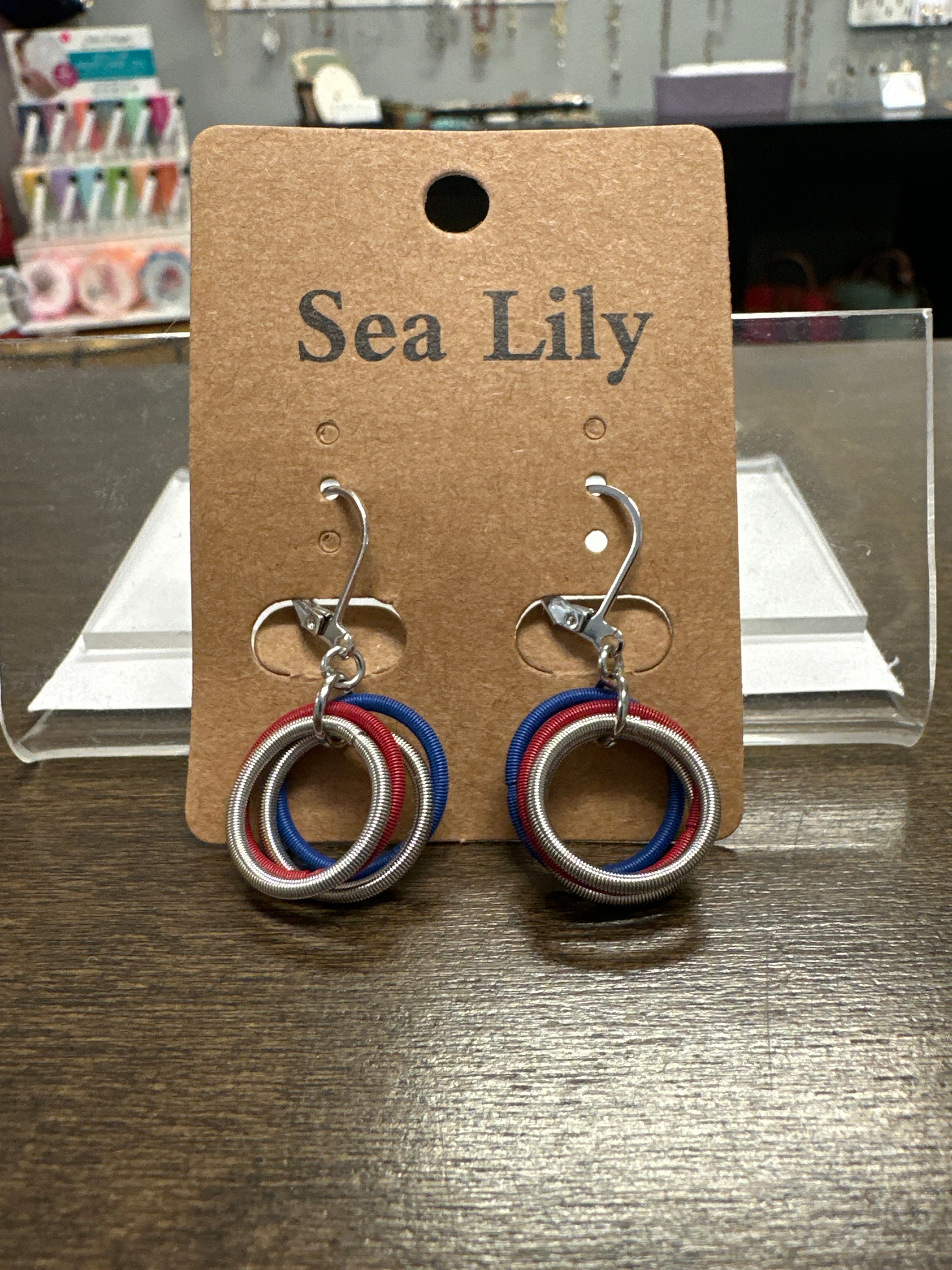Small round wire hoop earrings made out of piano wire. Light, adorable and colorful.